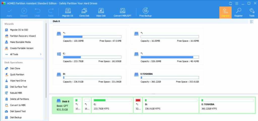 EaseUS поддерживает жесткие диски объемом до 4 ТБ, поэтому вы можете использовать его для управления практически любым разделом. Он также имеет возможность перемещать ОС на SSD, что является чрезвычайно полезной функцией.