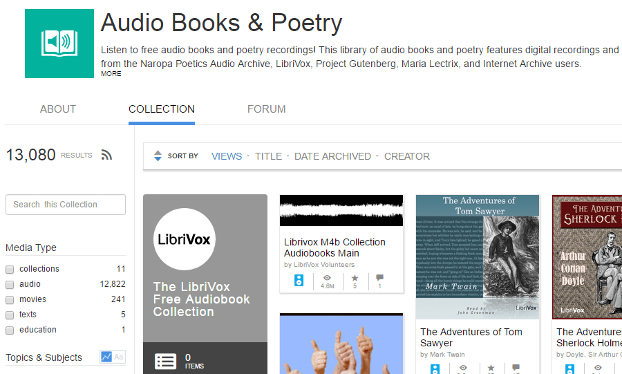 Мой любимый способ найти бесплатные аудиокниги в интернет-архиве — сортировать книги по количеству просмотров, чтобы найти самые популярные аудиокниги .