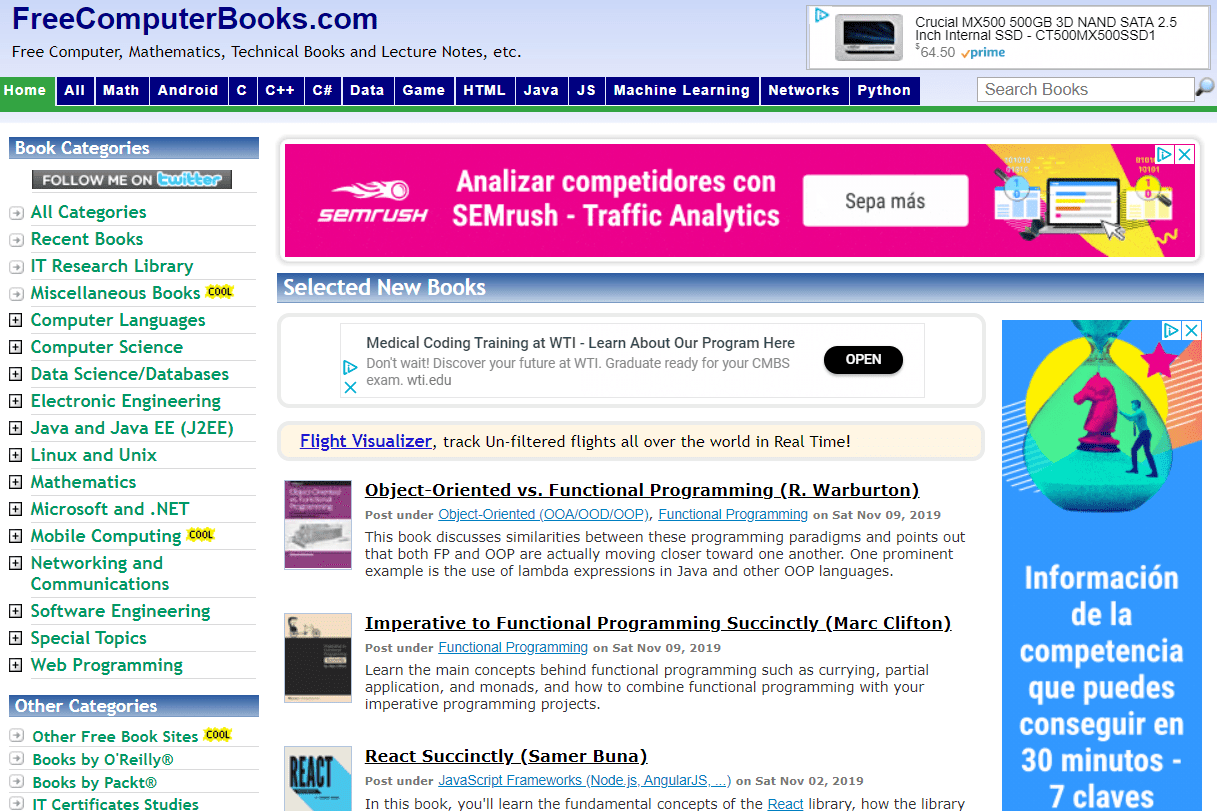 Каждый компьютерный предмет и язык программирования, о котором вы только можете подумать, представлены в Free Computer Books. Есть бесплатные учебники , обширные лекционные заметки и многое другое.