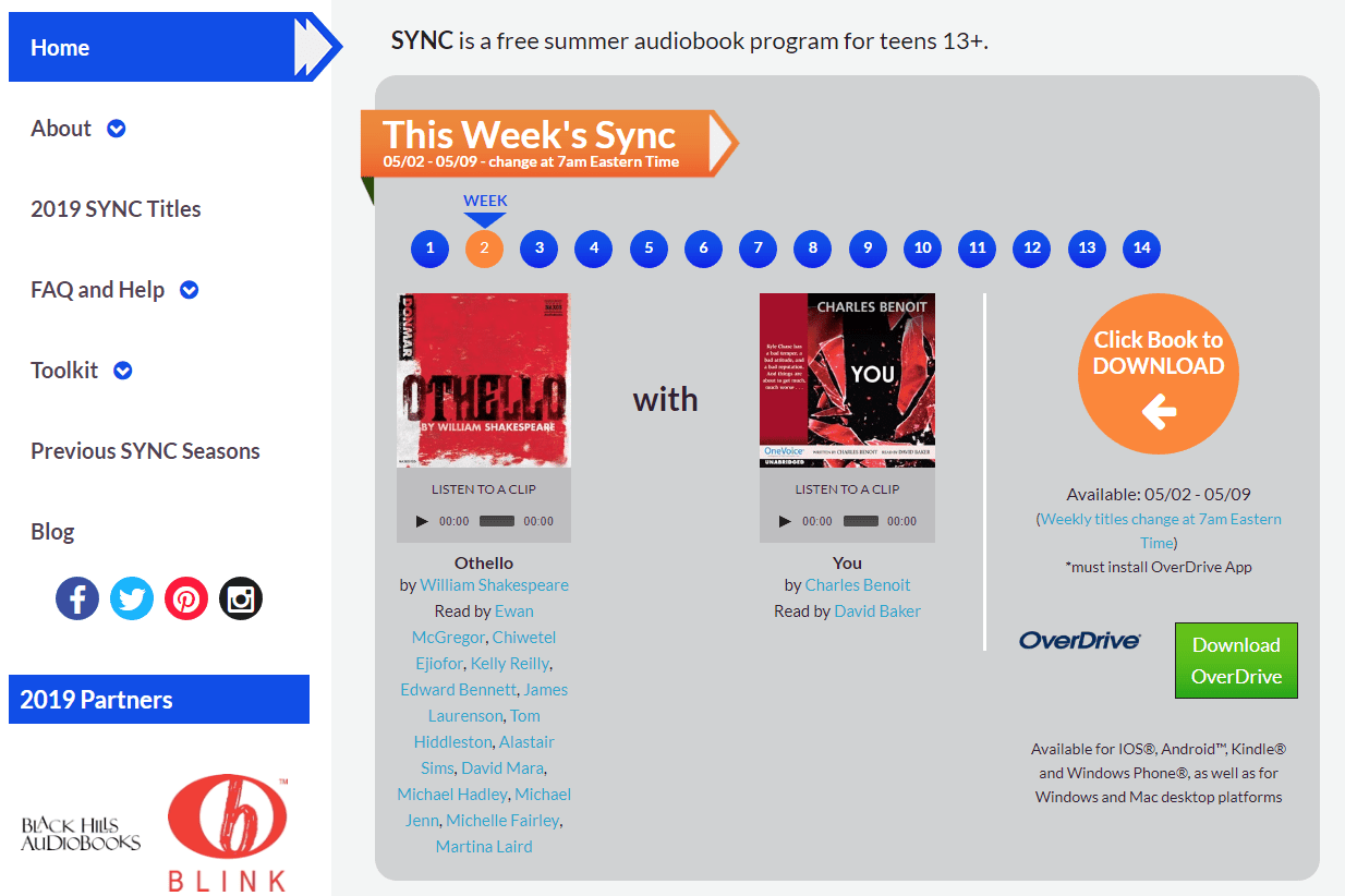 В течение лета SYNC раздает две бесплатные аудиокниги каждую неделю. Это идеальный способ для детей сохранять четкие навыки понимания перед возвращением в школу, а также предоставляет взрослым возможность получить несколько бесплатных аудиокниг.