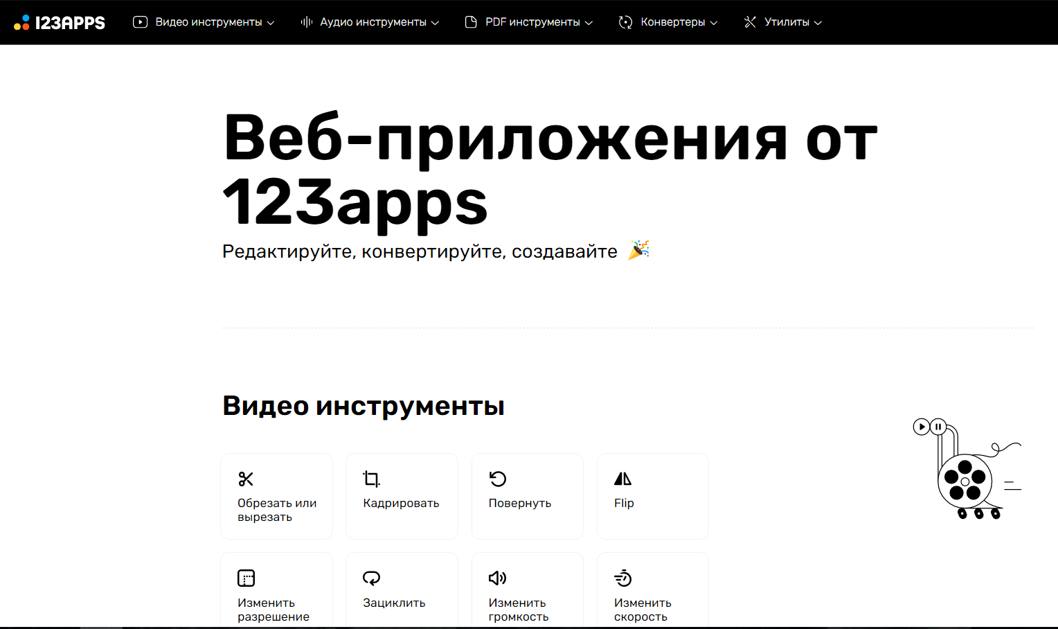 По умолчанию интерфейс этого онлайн-сервиса является англоязычным, но попасть на русифицированную версию можно по адресу: https://123apps.com/ru/.