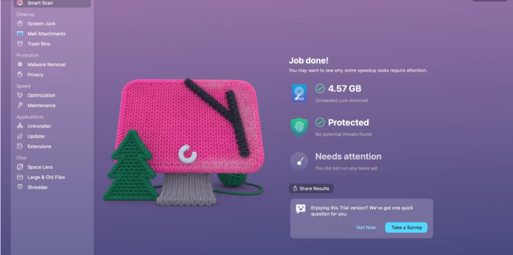 Пользователи высоко оценивают эффективность CleanMyMax X.Программа использует уникальную технологию очистки данных, которая отлично работает в последних версиях macOS.