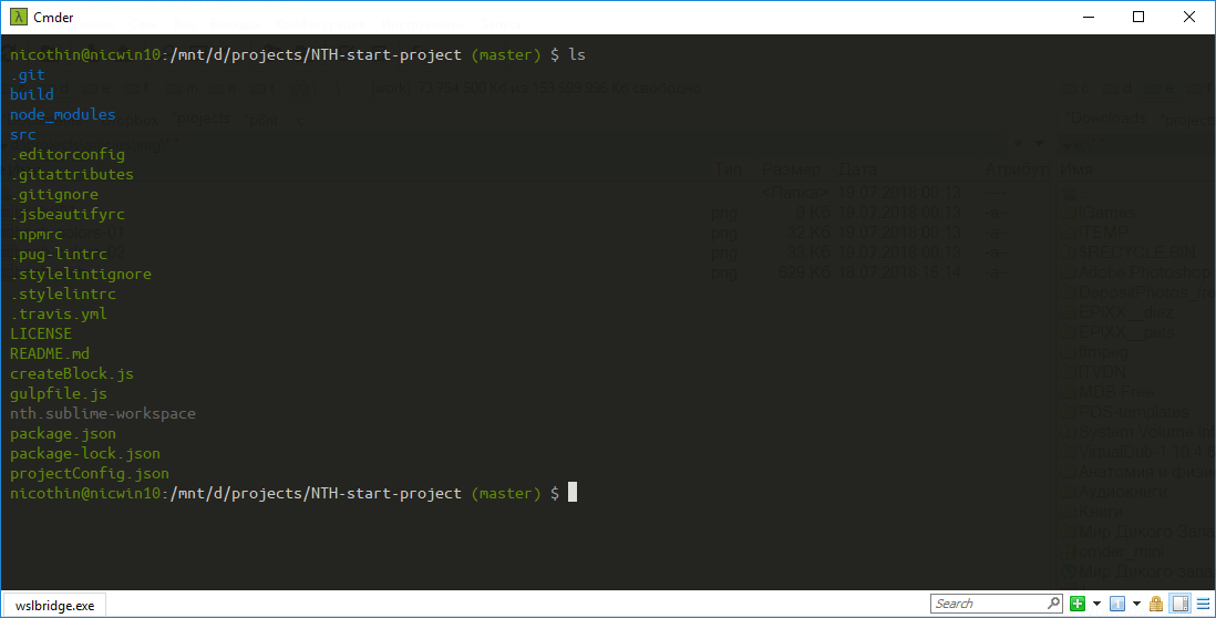 Я постоянно использую терминал для работы с git и автоматизации сборки проектов (вёрстка/фронтенд: компиляция pug и scss, обработка изображений, транспиляция js…). На моём рабочем компьютере стоит Windows 10, а на ноутбуке — OSX и мне хочется использовать одни и те же консольные команды на обеих системах, поэтому я использовал GitBash (терминал, устанавливающийся вместе с Git) внутри эмулятора (Cmder). Такая связка работала заметно медленнее терминала на OSX, поэтому я был воодушевлён новостью «В Windows 10 встроили подсистему Linux» (март 2016 г.), но тогда, в 2016 году, её использование разочаровало: нельзя было запускать из bash-терминала программы Windows, подсистема не определяла изменение файла, если изменение было сделано из Windows. Сейчас эти проблемы решены.