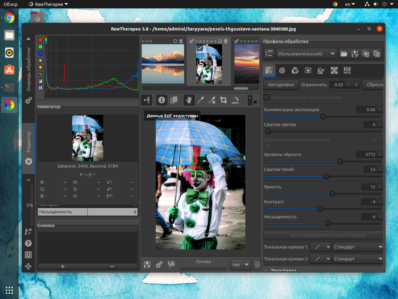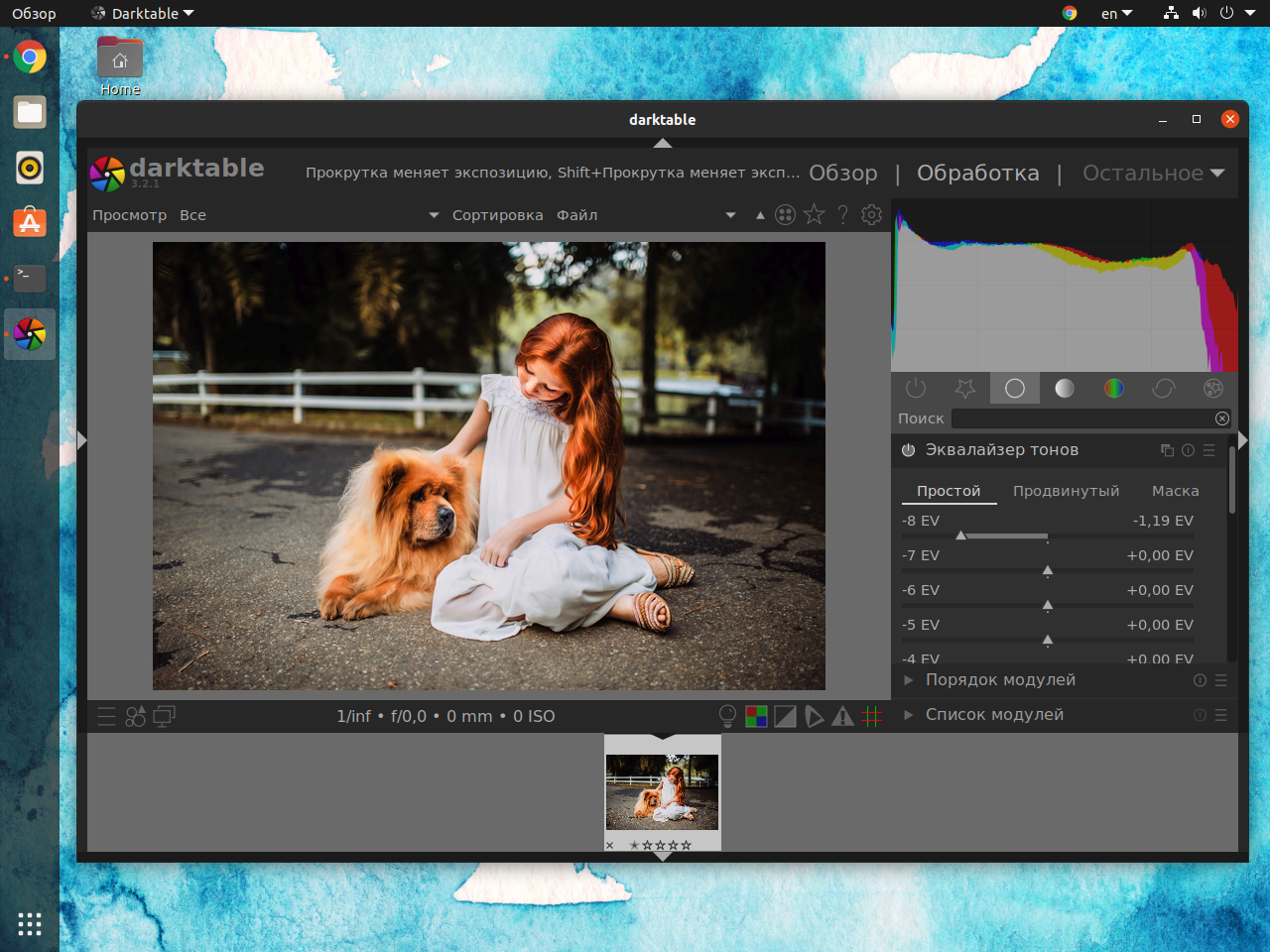 Первый Darktable, которая является наиболее рекомендуемой программой среди фотографов Linux. Интерфейс сложный, но получается хороший результат. Кроме того, он относительно не требует много ресурсов, поэтому лучше для старых компьютеров и более слабого оборудования.