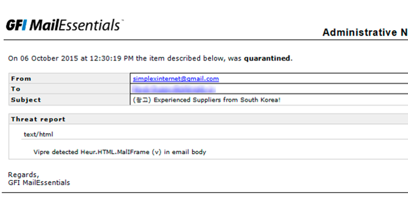 Рисунок 12. Vipre поймал HTML-эксплойт