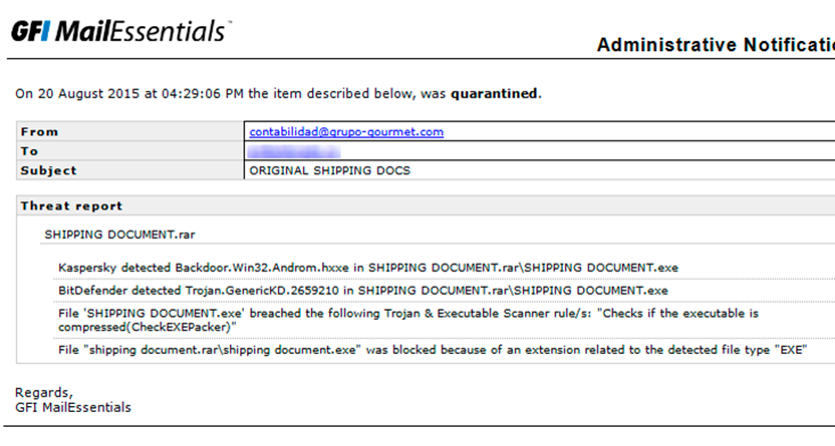 Для защиты от шпионских программ и вирусов GFI MailEssentials применяет целый арсенал технологий, включая несколько антивирусных движков, а также другие средства, созданные специально для защиты от атак через системы электронной почты, такие как анализ эксплойтов, сканер троянов и выполняемых файлов и очистка HTML для удаления опасного содержимого вроде JavaScript.