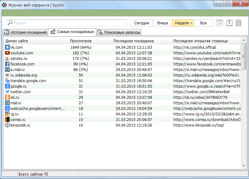 - анализ трафика и регистрация всех сайтов, где побывал пользователь за время сессии;