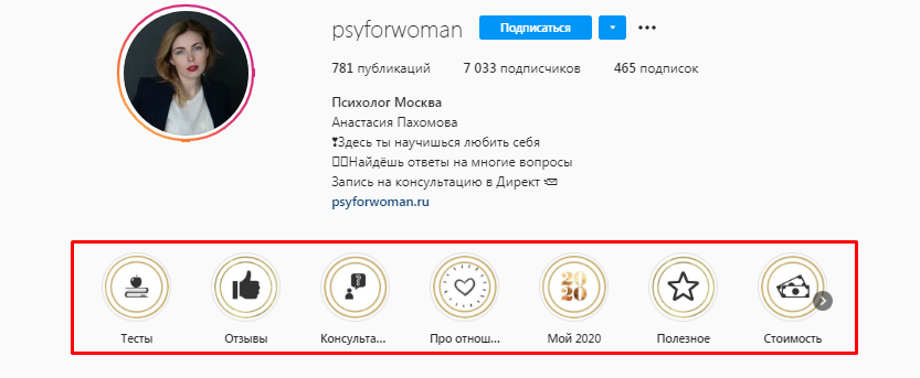 Примеры оформления хайлайтов для разных типов аккаунтов