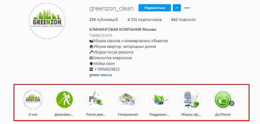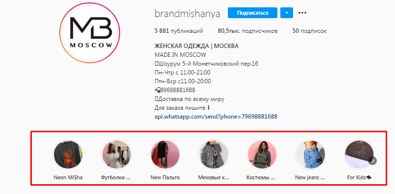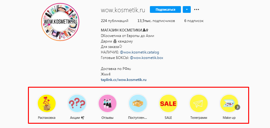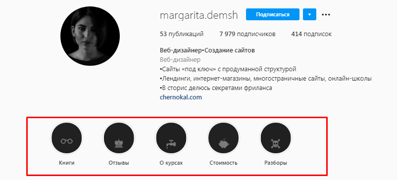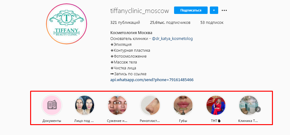 Для коммерческих аккаунтов хайлайты — идеальный способ закрепить на видном месте самую важную информацию или ценный контент, а также возможность реализовать что-то подобное меню сайта.