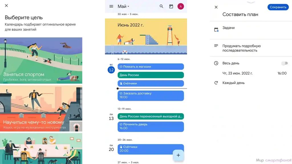 Приложение от Гугл стало одним из самых популярных у пользователей Андроид. Оно предлагает все базовые календарные функции, включая возможность разнообразного просмотра по дням, месяцам или другим периодам. На любые даты можно вносить собственные планы, устанавливать для них продолжительность и активировать напоминания. А при использовании нескольких устройств будет доступной синхронизация. Также сервис позволяет работать с мероприятиями, встречами, отдельными заданиями или бронированием. Для каждого есть особые функции.