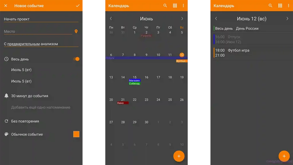 Также есть способ изменить шрифт приложения по умолчанию, темный режим, поддержку сенсорных экранов и жестов, негригорианские календари и организацию событий с помощью перетаскивания.