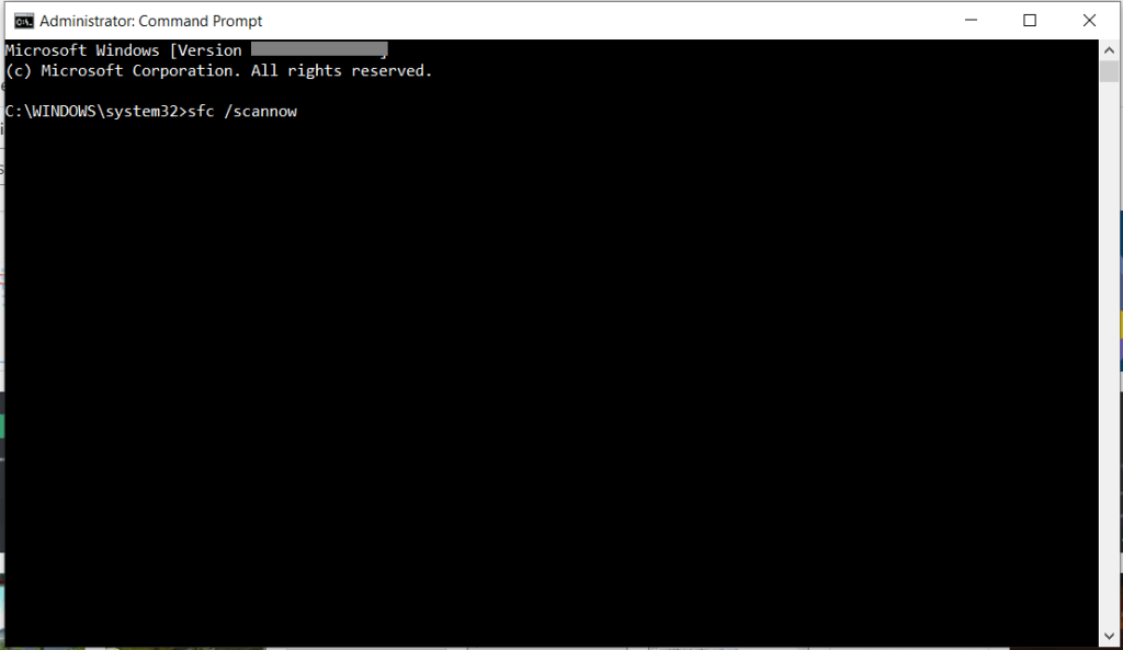 - Digita ‘ sfc / scannow ‘и нажмите Enter. Дождитесь завершения проверки.