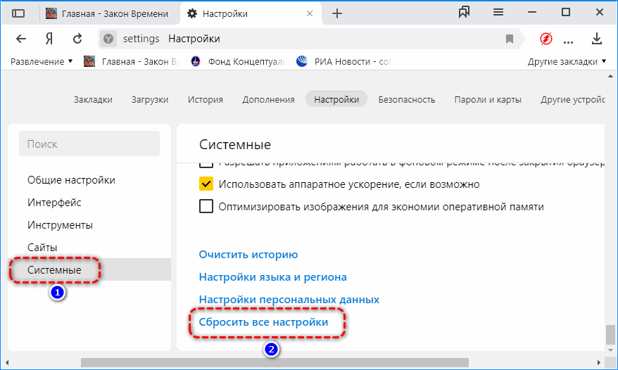 Начнём решение проблемы с наиболее эффективных и простых в реализации способов. Напоследок, если ничего не помогает, можем сбросить настройки Яндекс веб-обозревателя к изначальному состоянию или переустановить его.