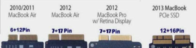 В MacBook Pro и MacBook Air указанных поколений устанавливались твердотельные накопители со специфическим разъемом, которые отличаются от большинства SSD с разъемом M2.