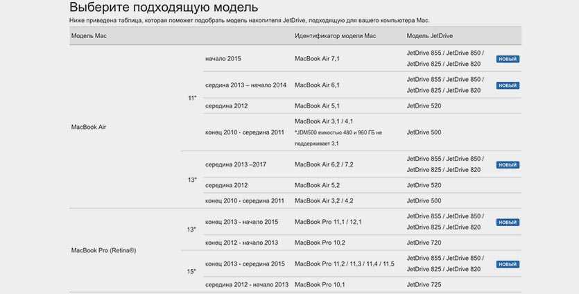 Для тех, кто присматривается к накопителям Transcend, на сайте компании разместили удобную таблицу. В ней можно найти нужную модель диска для своего ноутбука.