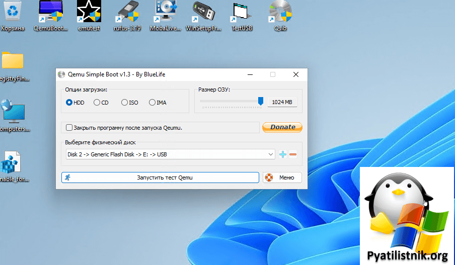 Проверка работоспособности флешки с помощью QemuSimpleBoot