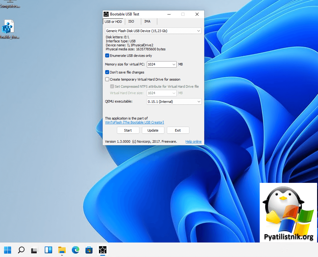 Через секунду Bootable-USB-Test показывает уже стандартный загрузчик Windows 11, проверка загрузочной флешки на работоспособность пройдена.