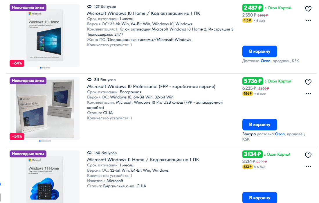 Вот к примеру цены на разные продукты Windows (Рис.1)