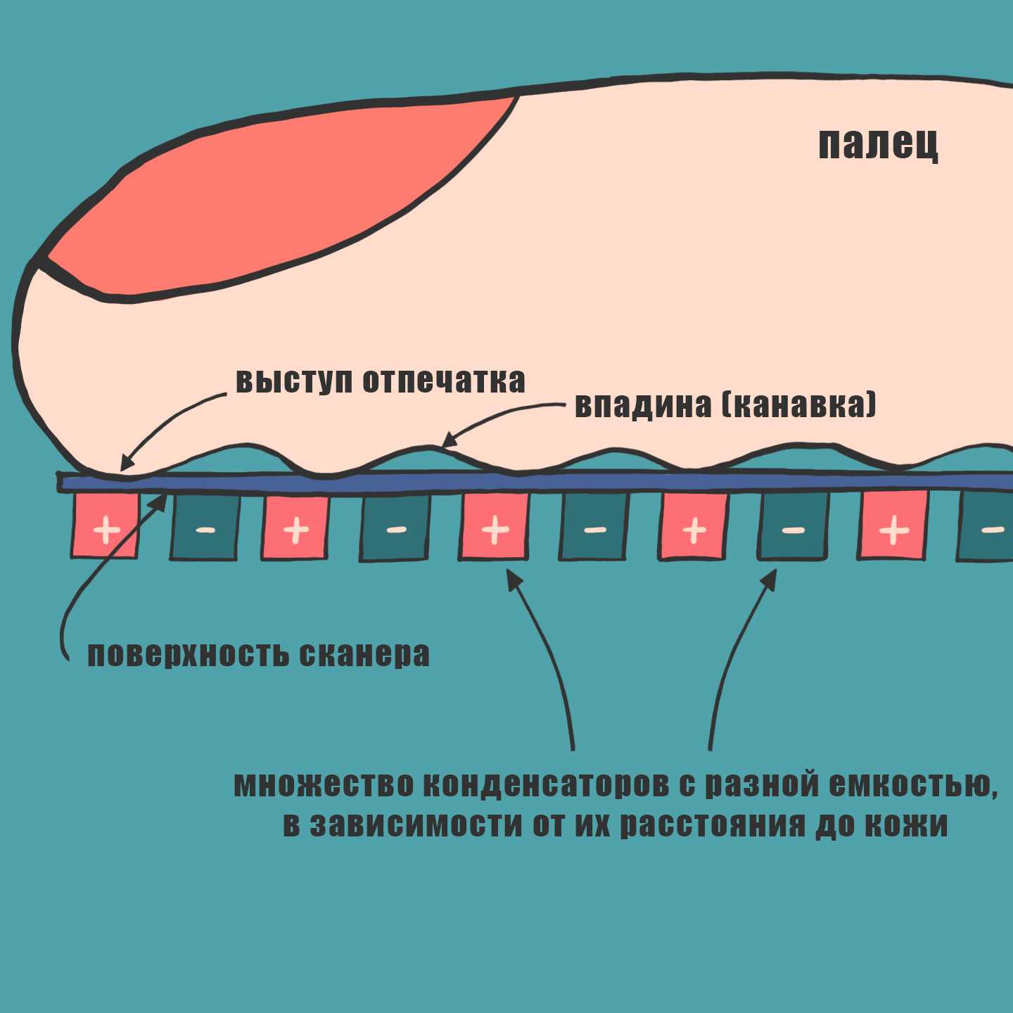 Как работает ёмкостный сканер. Иллюстрация: Светлана Чувилёва / Wylsacom Media
