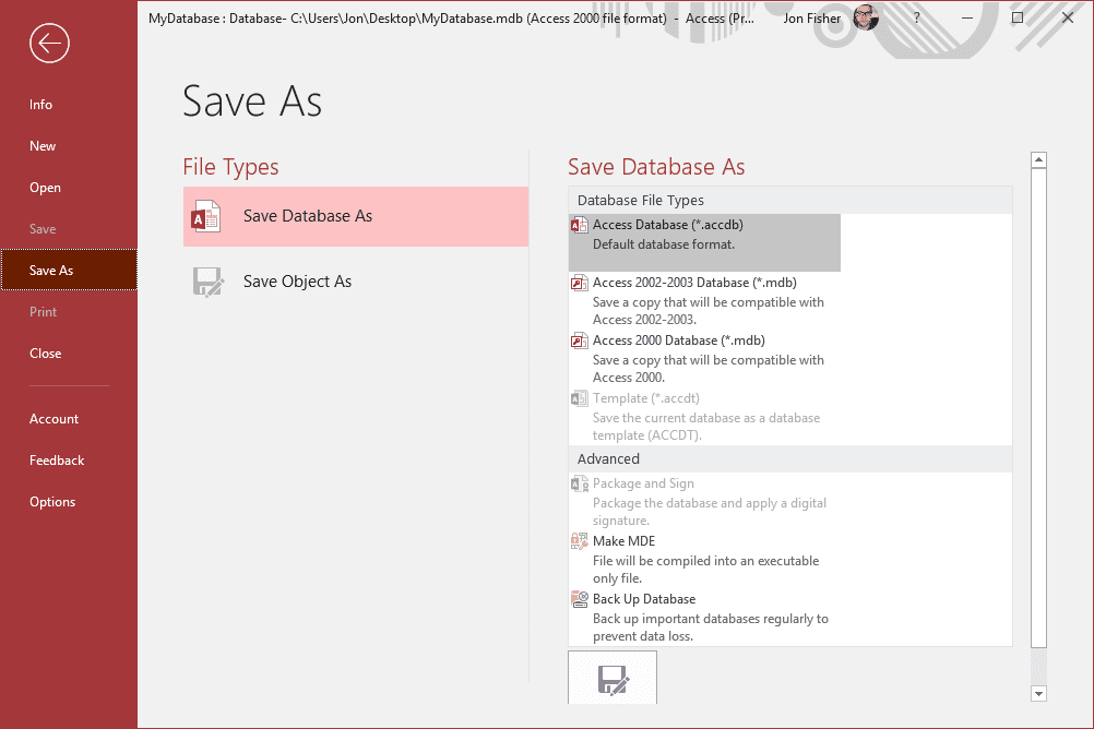 Если вы используете Microsoft Access 2007 или новее (2016, 2013 или 2010), лучший способ конвертировать MDB-файл — сначала открыть его, а затем сохранить файл в другом формате. У Microsoft есть пошаговые инструкции по преобразованию базы данных в формат ACCDB.