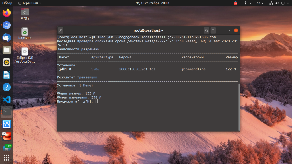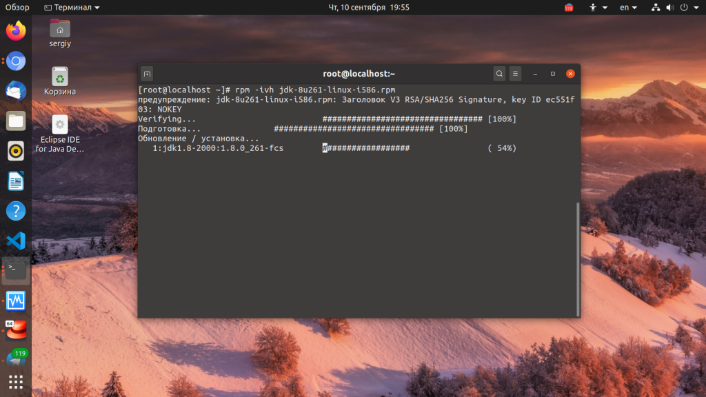 Чтобы установить RPM-пакет с помощью rpm, используйте параметр -i, а затем имя пакета: