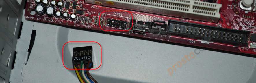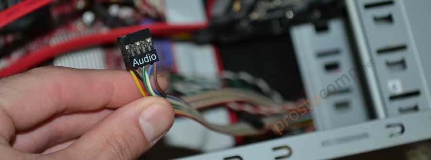 Покажу на примере своего компьютера. За вывод звука (и микрофона) на переднюю панель отвечает вот такой штекер с надписью Audio: