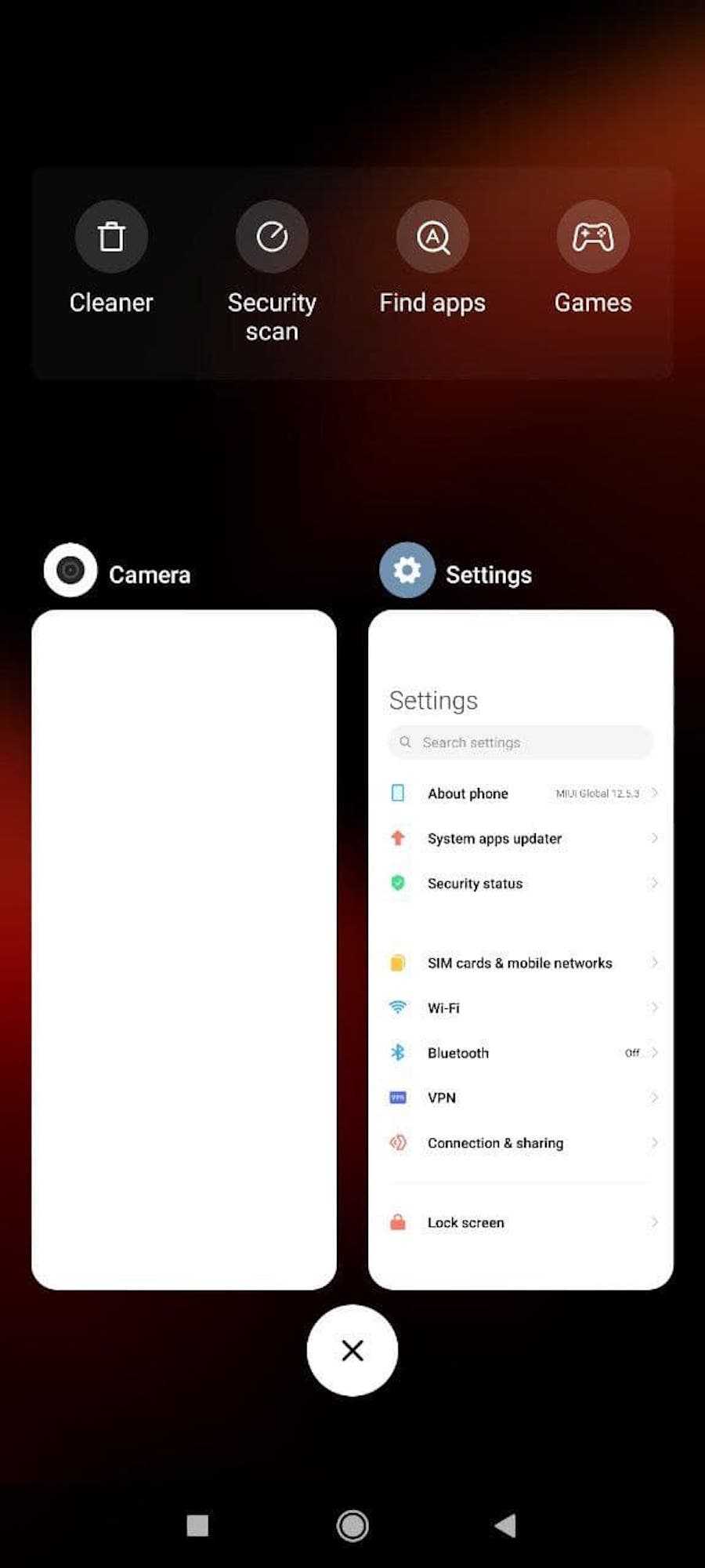 - Нажмите на «крестик» в открывшемся окне или закройте приложения вручную свайпом влево или вправо.