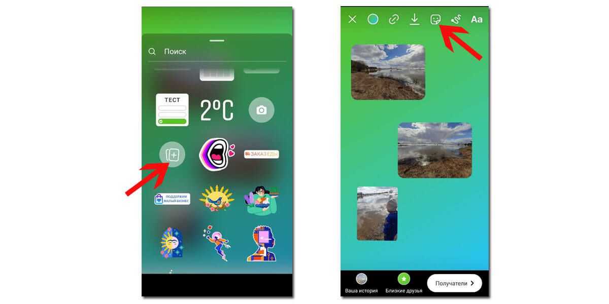 Еще один способ вставить несколько фотографий в Историю Инстаграма* – использовать специальный стикер.