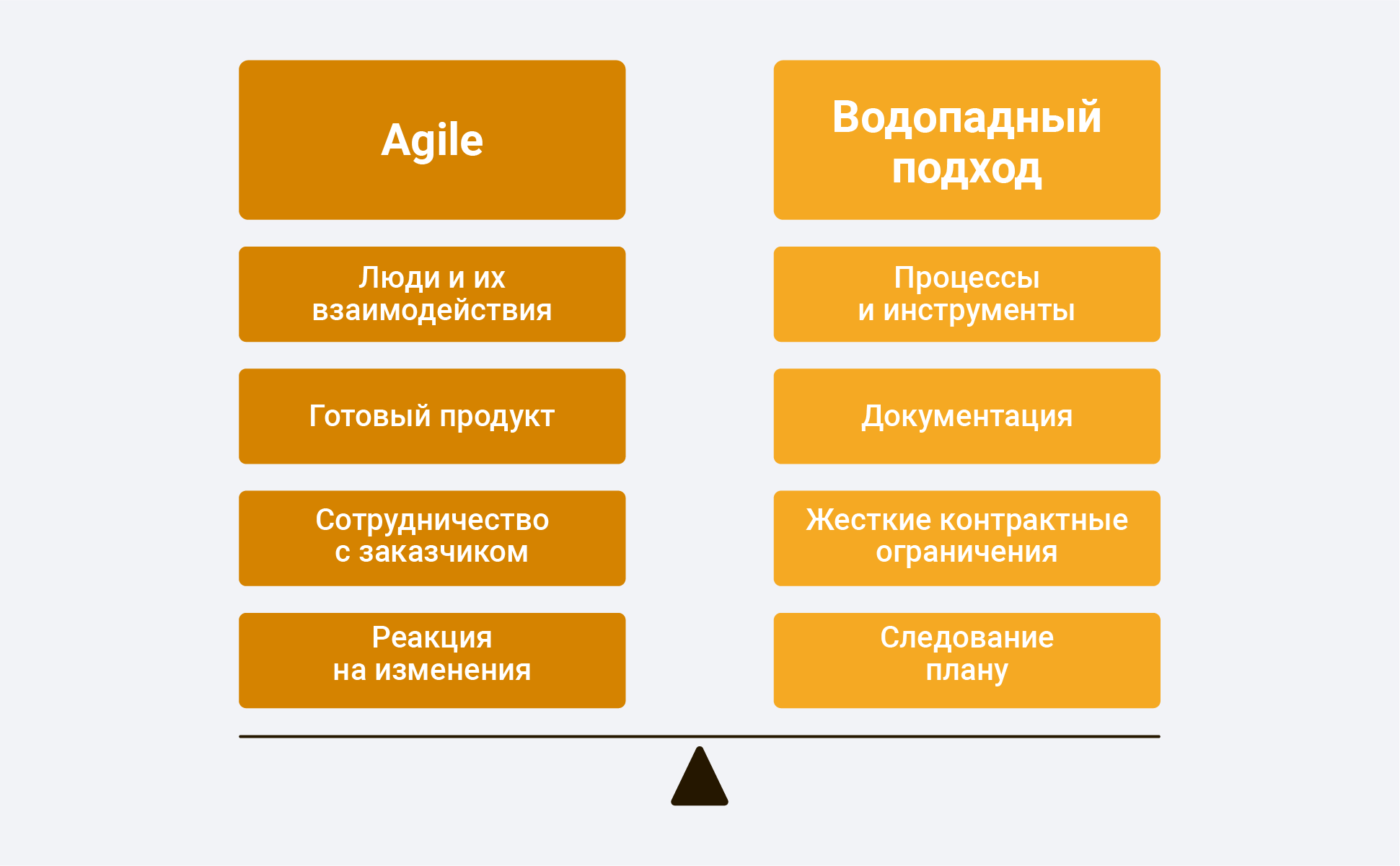 Эти четыре пункта стали основой для появления Agile, гибкого процесса разработки программного обеспечения. Позже были созданы 12 принципов, которые и сейчас используются в любой Agile-методологии.