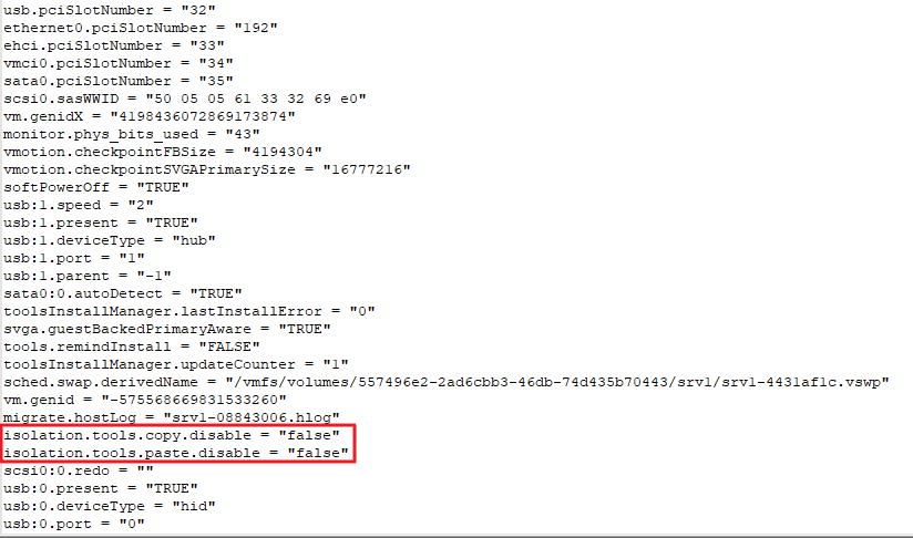 vmx.fullpath = “/bin/vmx” isolation.tools.copy.disable=”FALSE” isolation.tools.paste.disable=”FALSE”