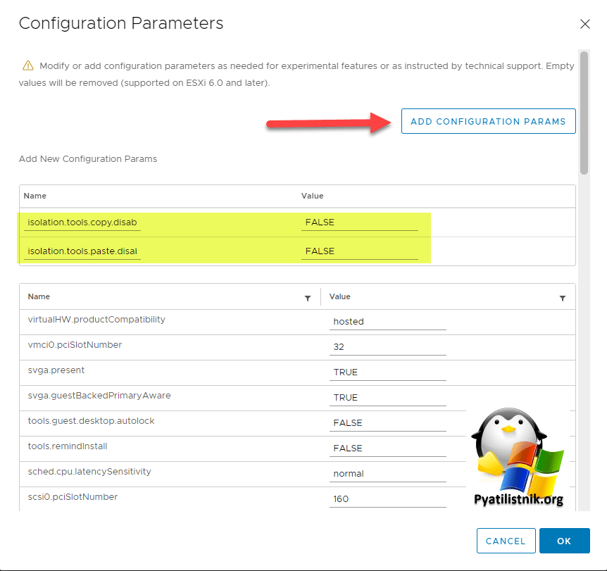 То же самое можно проделать, отредактировав файл конфигурации виртуальной машины( он имеет имя в формате VMName.vmx). Скачайте этот файл с датастора, где расположена ВМ, себе на компьютер и отредактируйте в текстовом редакторе. Должно получиться так: