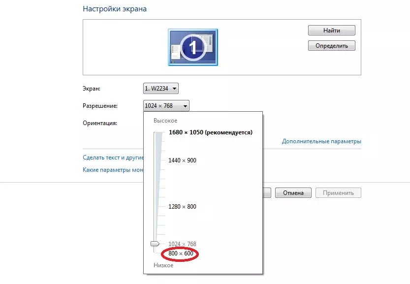 - уменьшаем параметры до возникновения требуемого значения, выбрав цифры нового разрешения