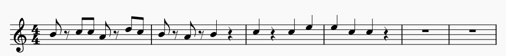 В качестве закрепления материала можно попробовать заменить в такте половинчатую паузу на две четвертные. Должно получиться как на примере ниже.
