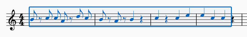 - Нажатие и перетаскивание по фону выделяет отрезок времени. Нажмите Enter для переключения выделения между временем и всех нот, которые находятся в нём.