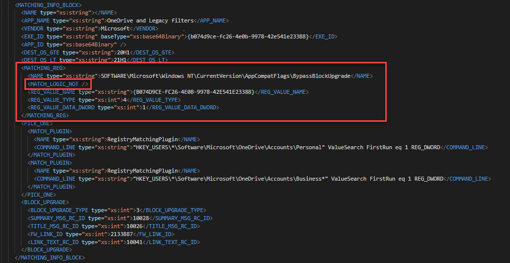 In my search to find answers, the OneDrive and Legacy filters block has been the thing that I just didn’t understand. If you list an app or hardware model in the block, that makes sense, but this one was so vague that it drove me to dig deeper.