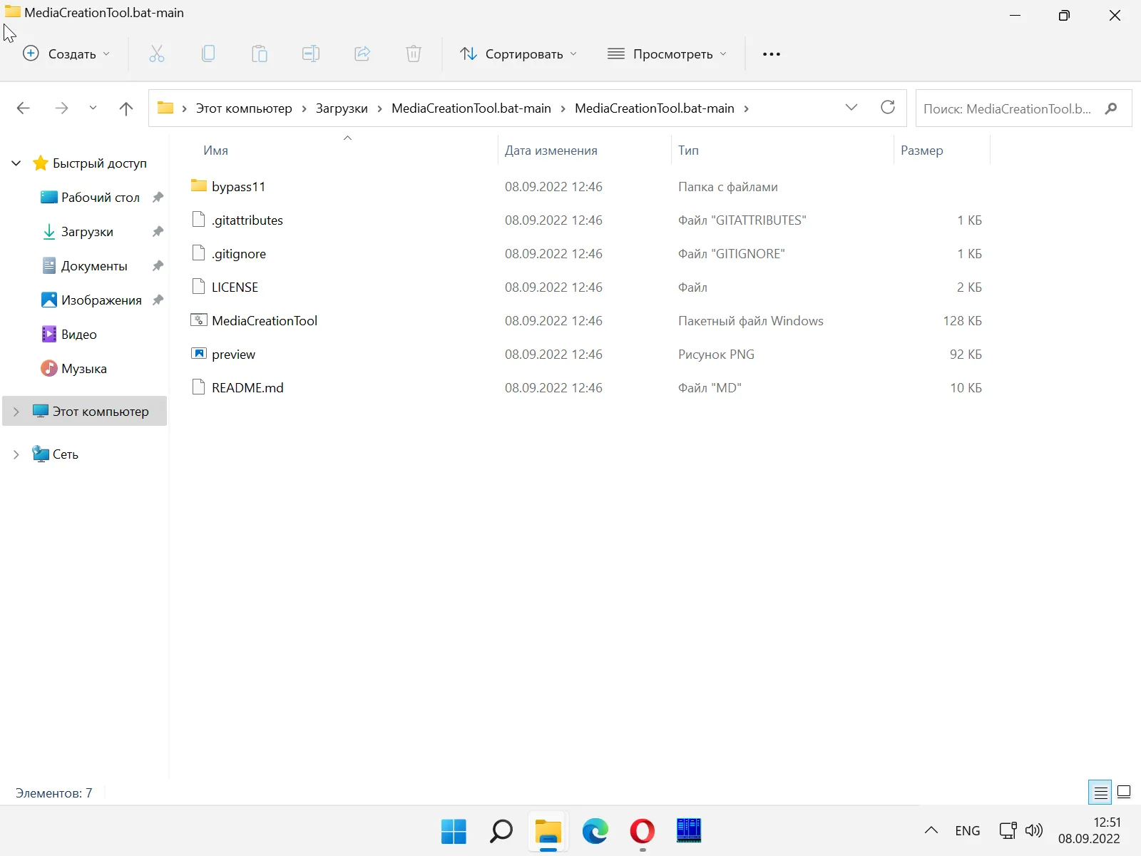 После распаковки архива зайдите в папку «MediaCreationTool.bat-main». Запустите пакетный файл Windows MediaCreationTool.