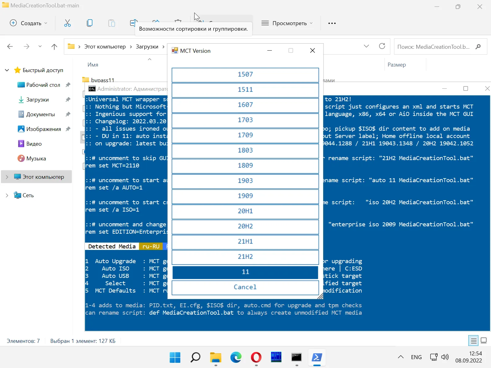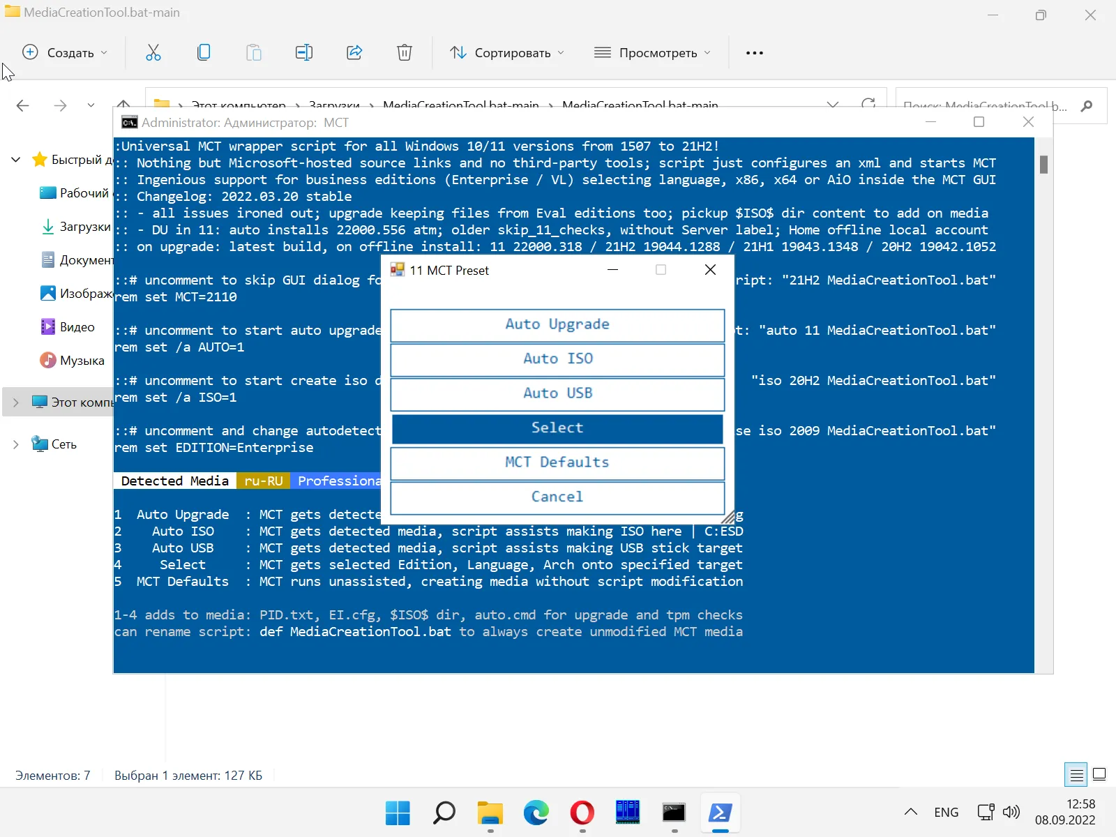 Выберите «MCT Defaults» для загрузки необходимой версии Media Creation Tool. При выборе других пунктов возможны сбои.