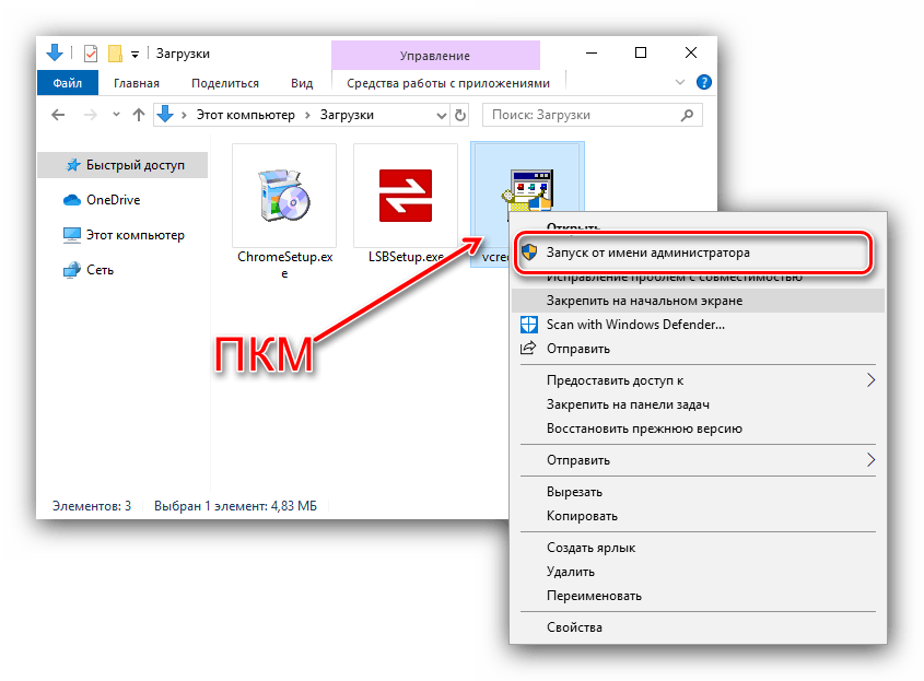 Если открытие исполняемого файла программы, игры либо инсталлятора приложения приводит к появлению рассматриваемой ошибки, следует попробовать запустить его от имени администратора.