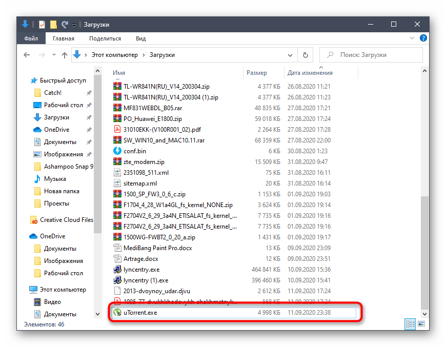 - Перейдите к установщику мюТоррента и вызовите его контекстное меню, сделав правый клик мышкой.