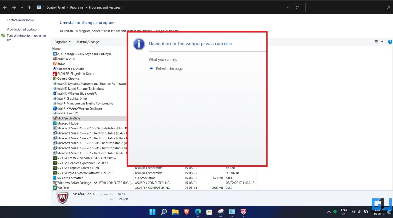 Вы можете получить сообщение об ошибке «Переход к этой веб-странице был отменен» при попытке удалить McAfee LiveSafe с панели управления. Хотя это может быть по разным причинам, вам не нужно тратить время на исправление ошибки. Вы можете удалить программное обеспечение другими способами, указанными ниже.