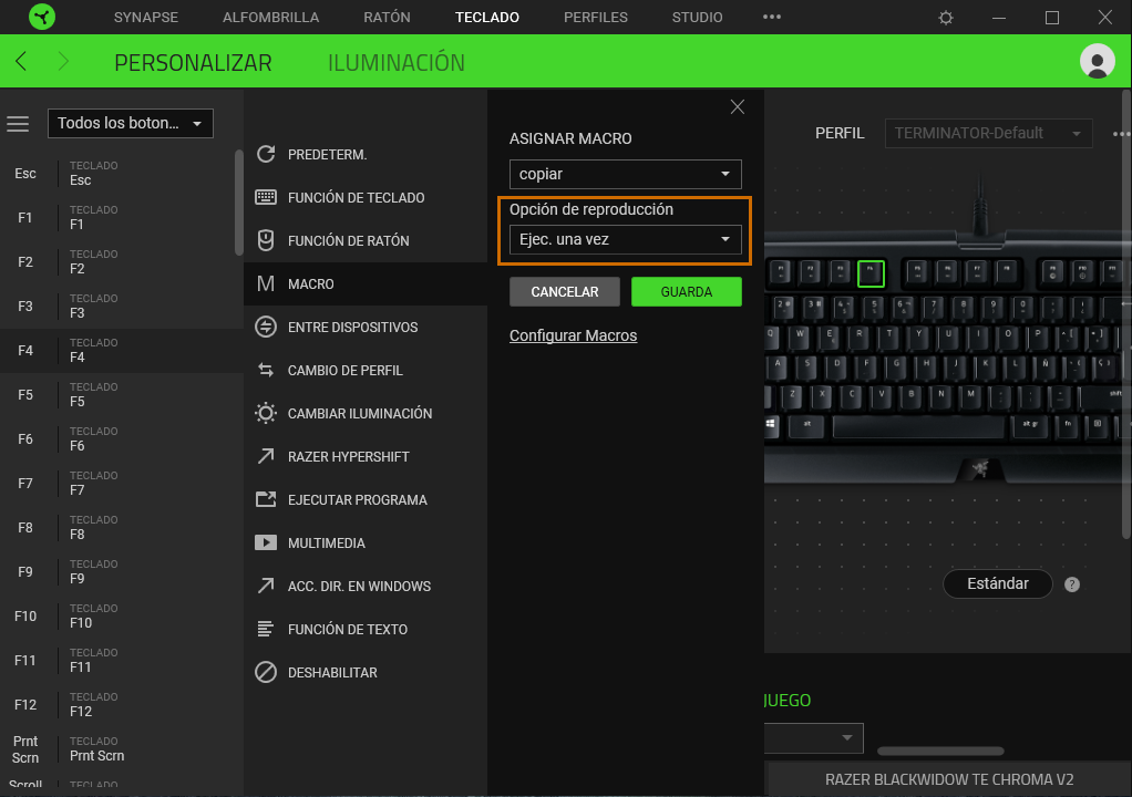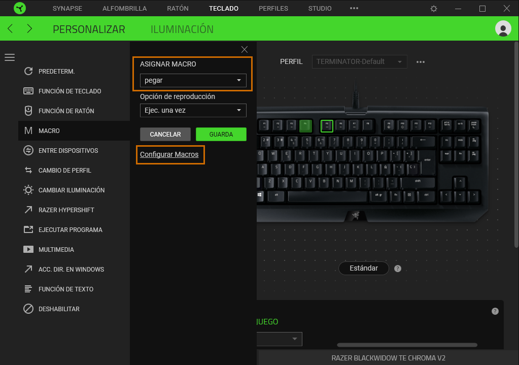 Последний шаг, который мы оставили, — вернуться в главное меню персонализации и выбрать нужные клавиши, перейти к макросам и назначить ту, которую мы создали. Полегче, а?
