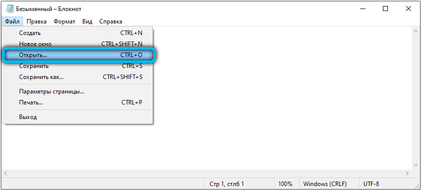 - Войдите в меню «Файл», нажмите на кнопку «Открыть…».