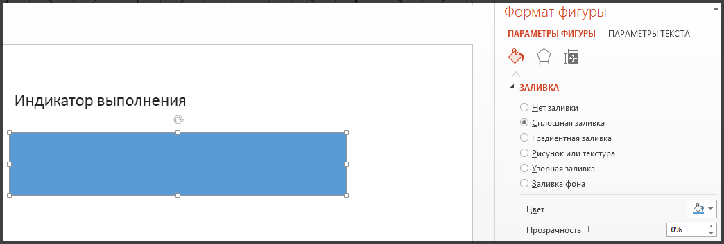 Вы можете изменить цвет индикатора прогресса на любой другой. Щелкните его правой кнопкой мыши и выберите формат > Параметры фигуры > заливка > Сплошная заливка.