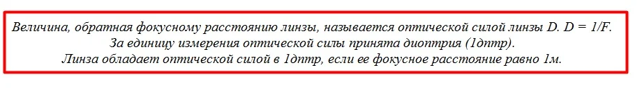 Так как у рассеивающих линз фокус мнимый, условно принято считать фокусное расстояние отрицательным и оптическую силу таких линз тоже отрицательной.