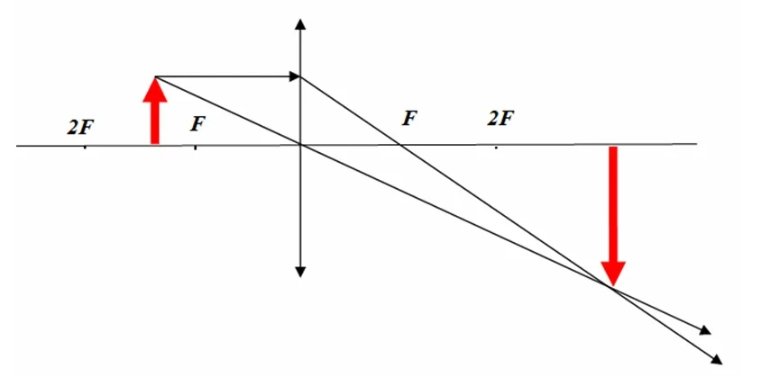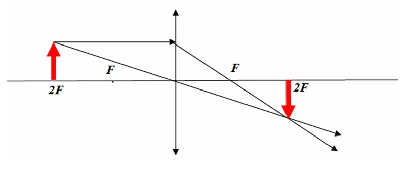 Предмет в точке двойного фокуса – изображение перевернутое исходного размера.