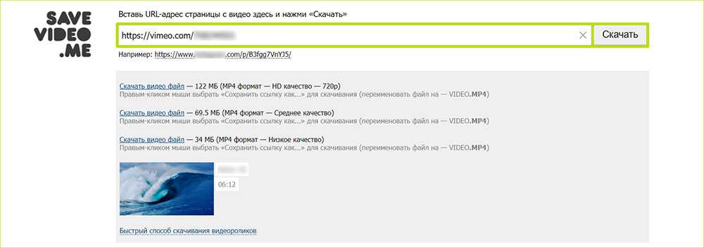 Чтобы быстро качать видеофайлы напрямую с хостингов без программ, воспользуйтесь онлайн-сервисами. Они отличаются простотой в использовании — требуется вставить ссылку и выбрать разрешение. Однако сайты поддерживают только определенные площадки, и несовместимы со стриминговыми платформами.