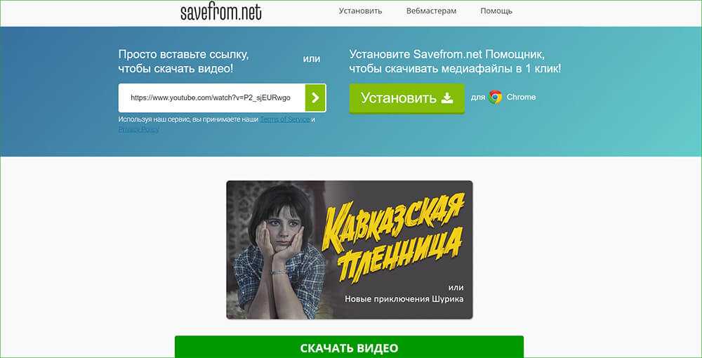 - Откройте видеоролик в браузере и скопируйте ссылку на него. В SaveFrom.net вставьте данные из буфера обмена в специальное поле.