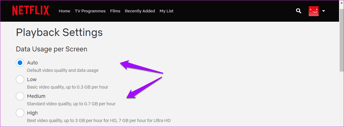 Выберите один в зависимости от вашего плана и монитора, который вы используете. Нет смысла платить за премиум-план и выбирать «Высокий», если ваш телефон, ноутбук, телевизор или монитор не могут воспроизводить видео в формате HD или UHD. Будь мудрым и выбирай соответственно.