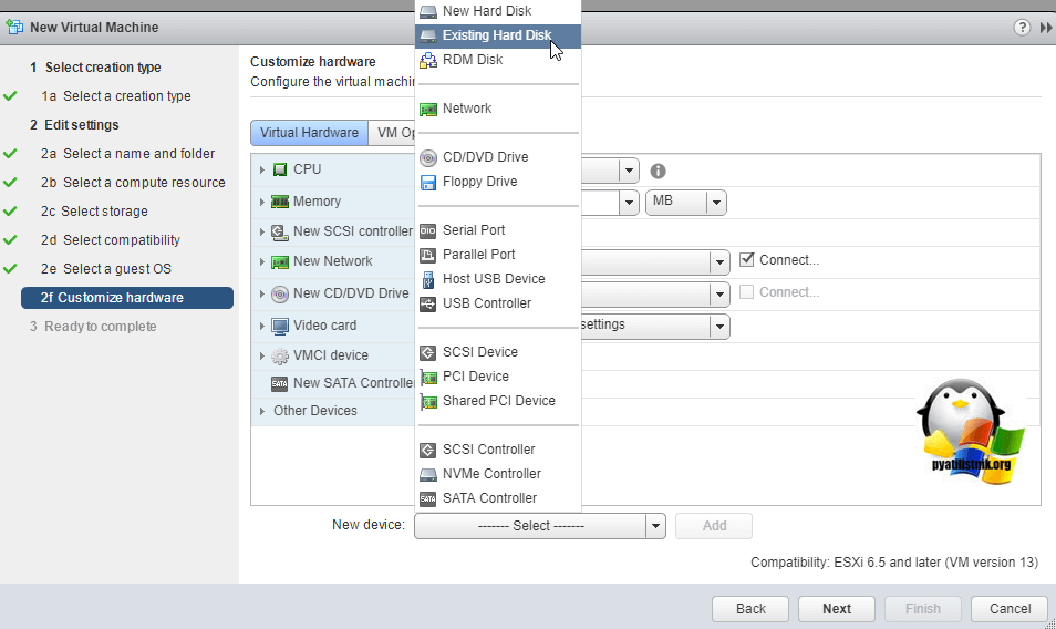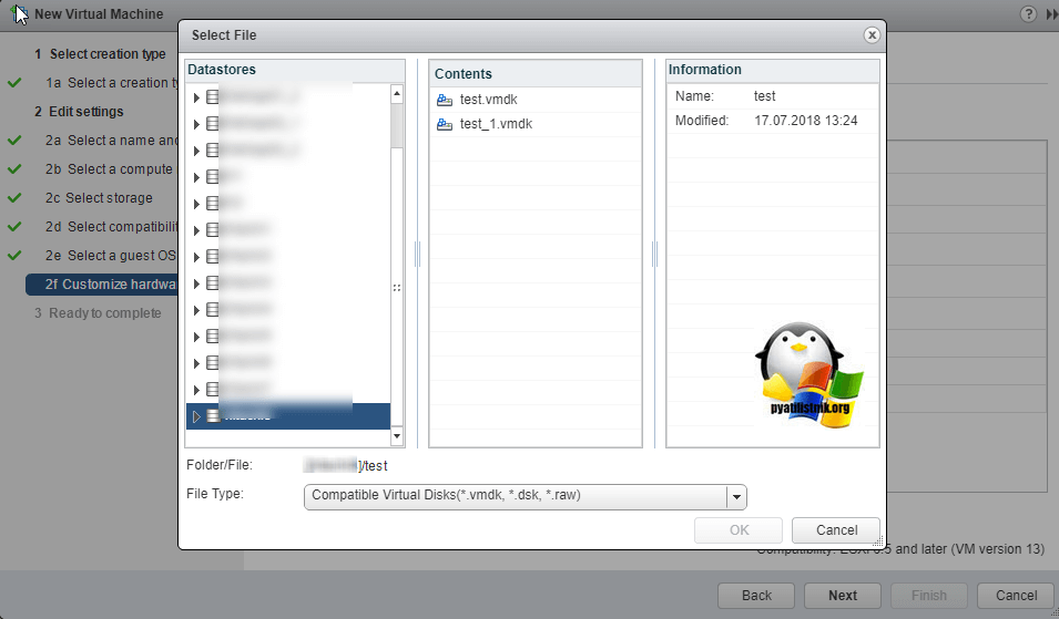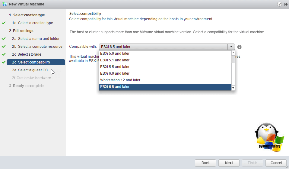 Далее вы создаете новую виртуальную машину, задаете ей другое имя отличное от старой. На шаге 2d Select compatibility вы выбираете версию виртуалки. Таблицу версий можно посмотреть вот тут.