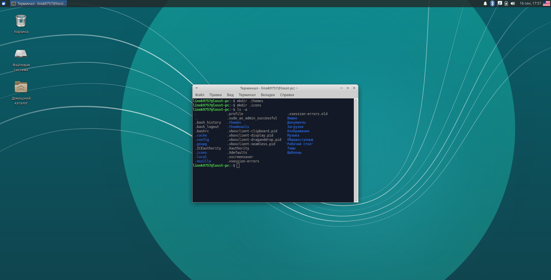 Чтобы создать скрытые папки, нажмите Ctrl + Alt + T, чтобы открыть окно терминала. Введите в командной строке следующие команды, по одной за раз.
